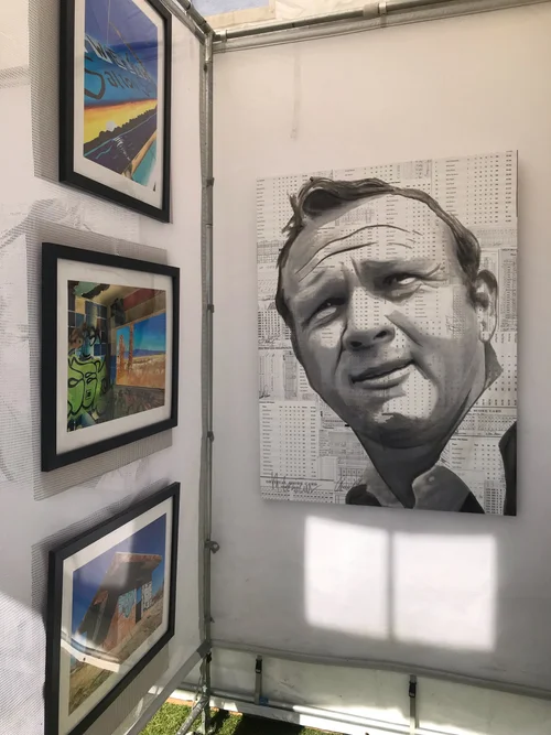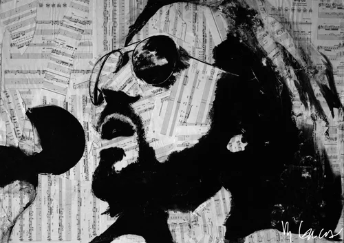 Each artist/ musician's portrait is made up entirely of there own original sheet music.